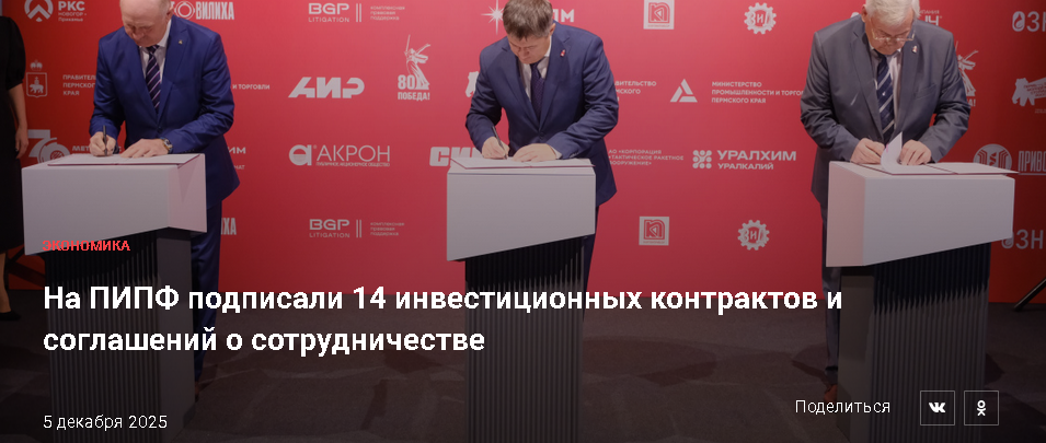 2. Администрация города Березники и ПАО «Корпорация ВСМПО-АВИСМА» закрепили договоренности о взаимодействии по вопросу развития социальной инфраструктуры муниципального округа. Согласно документу ВСМПО-АВИСМА безвозмездно передаст Дворца культуры и творчества «Металлург» в собственность Березников. Ранее благодаря предприятию в ДК были оборудованы спортивные залы, учебные и творческие пространства.
