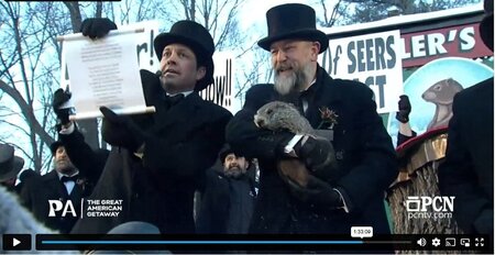 После несколько часов плясок и поганых песен под дверью, мохнатый был на столько задобан, что не нашел сил спрятаться в нору. Весна будет ранняя, но скорее всего только в Пиннсельвании.