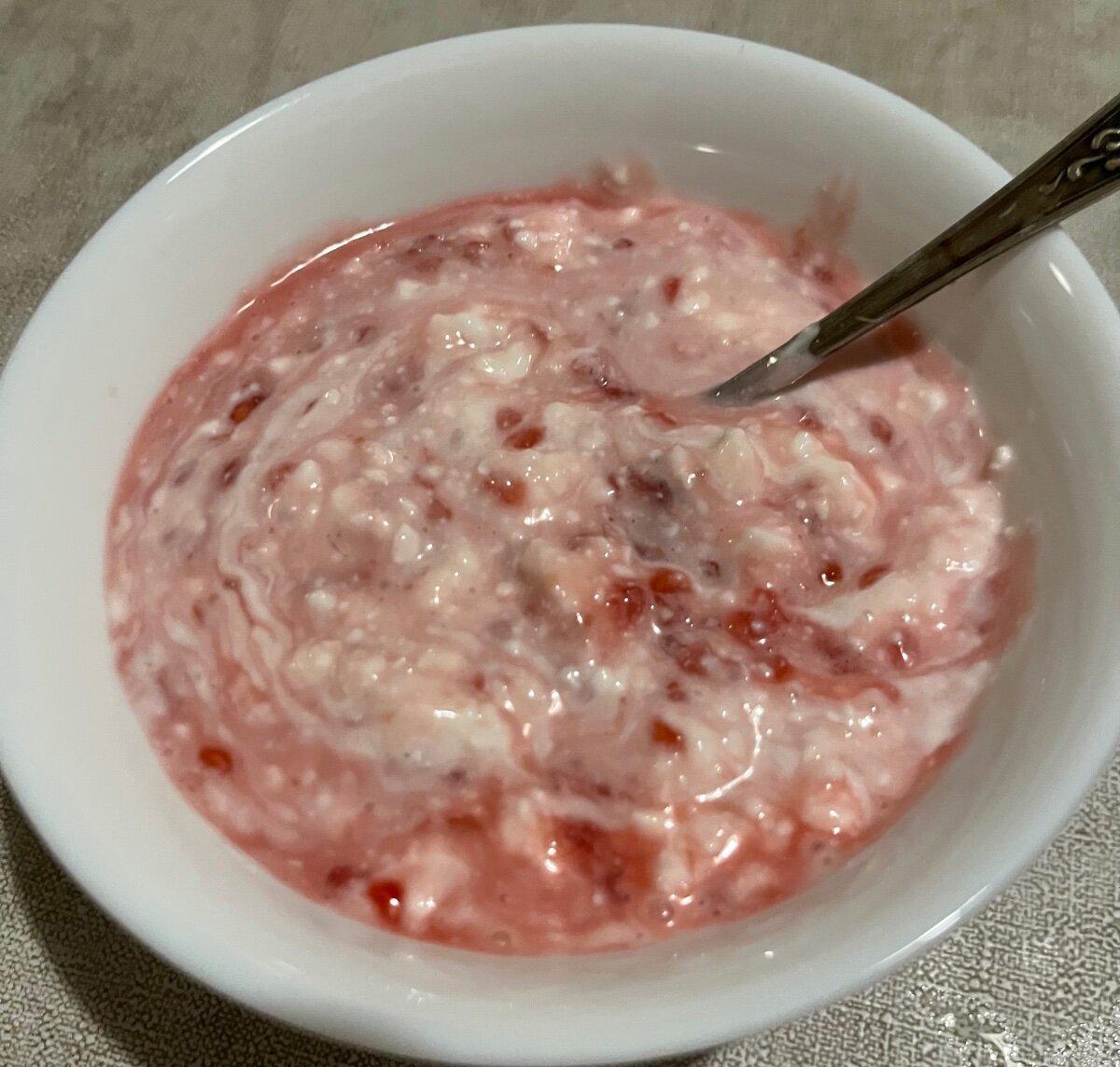 И хде вы видели хозяйственную женщину бесполезно передвигающуюся с палками?Вы вообще знаете как выглядит хозяйственная женщина? Я поход могу совершить только в соседний магазин. Вот сегодня сходила в пятерочку купила творог с малиной, мне очень понравилось. И так захотелось малины! Искать в банках малину не стала, достала замороженную и слегка с сахаром ее поварила. Вся квартира наполнилась запахом малины. Творог, Сметана и малина шикарно вкусно на ужин!