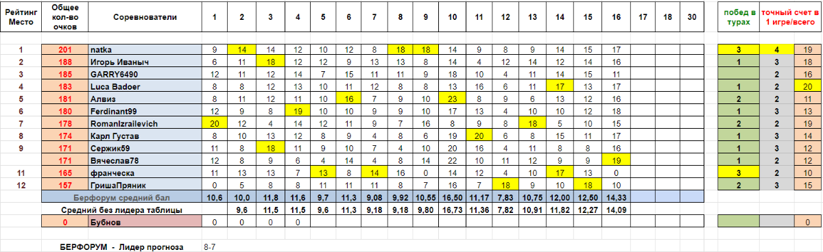 какая-то невероятная борьба!!! и победа у Вячеслав78!!! Браво!!! ждали!! в общем, огонь! старт 19 тура 29 ноября! не опаздывайте!