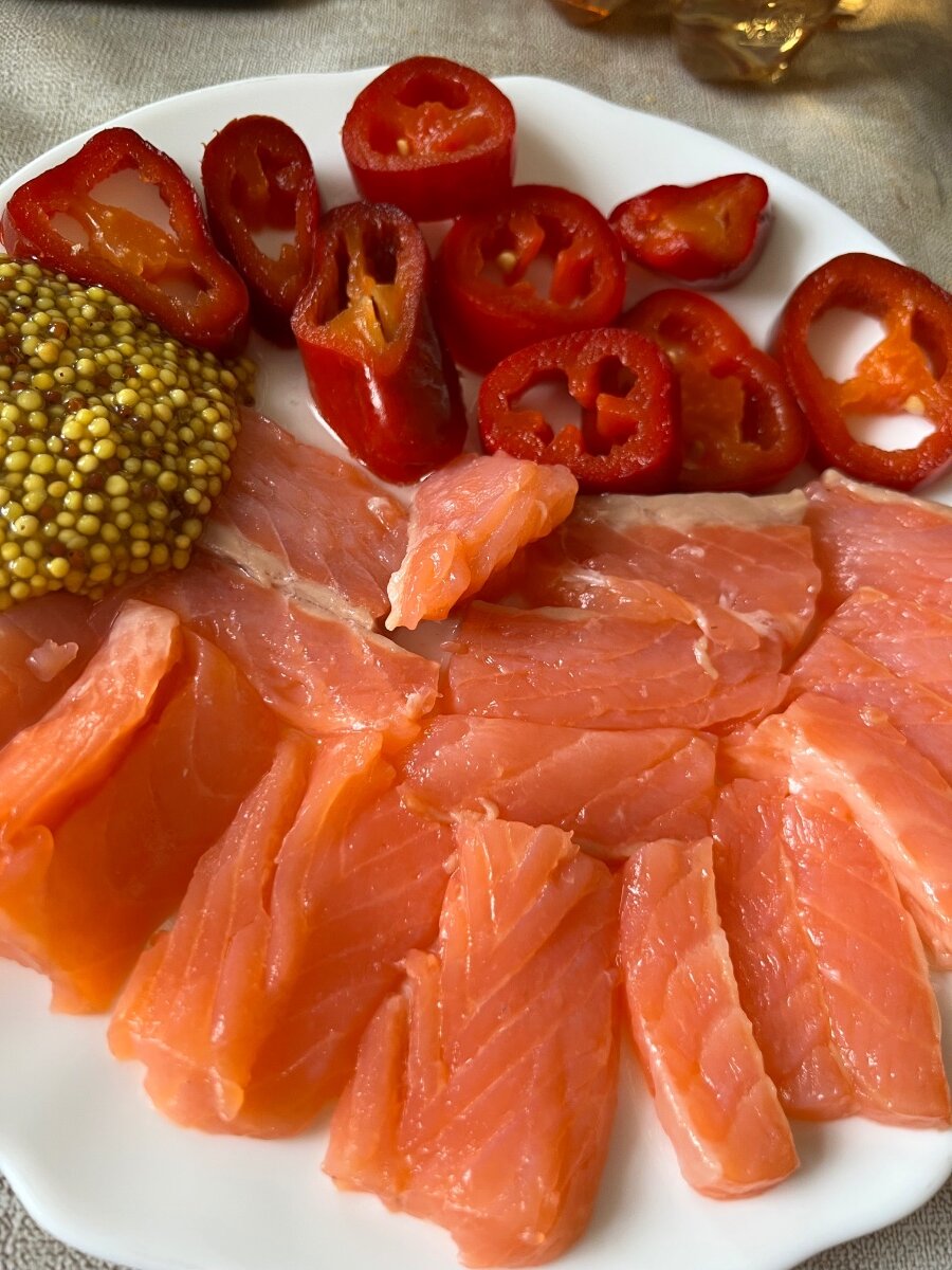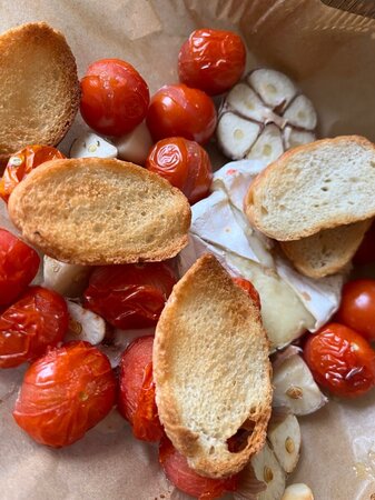 Сегодня кусочничаю и тестирую аэрогриль(не в восторге я от него) купила рыбу, острый перец халапеньо. помидоры черри, чеснок и сыр горячее расплавившееся. Ну, что сказать, я не в восторге! Рыба вкусная, халапеньо тоже обожаю, чеснок после прогрева удобно серединки доставать, чтобы не вонять, а вот черри , по-мне так сырые вкуснее, чем запеченные, и сыр-гомно! Нет у нас хороших сыров, не-ту. Ни запаха, ни остринки, ни вкуса! Вот недаром я его не покупаю. В Москву поеду там чего-нить найду .