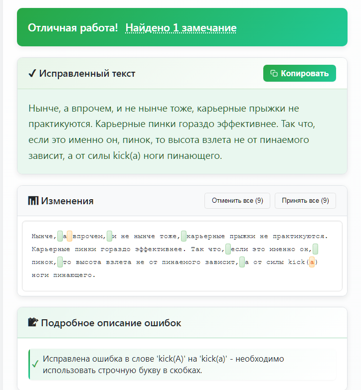 2. В докторе корректор пробудился ? В следующий раз пусть красненьким ашипки отмечает.Штоп наглядненько было. Или так : Ежели сызнова величина и наличие пробелов, - то на эту тему уже утомило.Сотни людей,сайтов и проч. за многие годы на эту тему в отношение меня не заморачивались.Вы - единственный. Не все больны текстовым перфекционизмом.