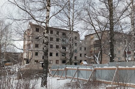 2 подъезда снесли, осталось самое сложное - примыкание к С98. Окна на торце его на всякий случай закрыли щитами