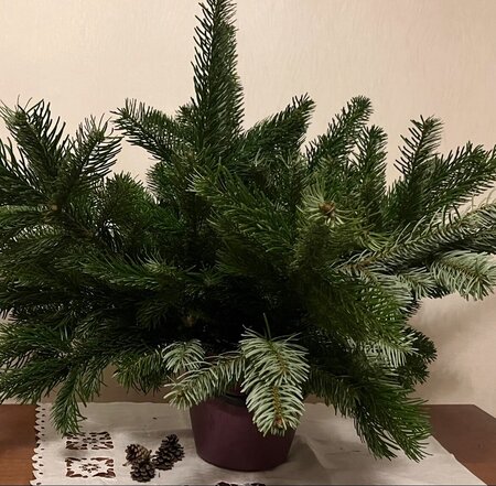 Везде уже Новый год, у меня вчера тоже огромные ветки пришли , ну, представьте картофельный мешок, вот полтора мешка. Раздала. Себе оставила, поставила в ведро, еще не украсила. Много насекомых было, лесной червяк был, а сегодня выползла улитка с рожками, но где-то потеряла свой домик, была бездомная. Я ветки промыла. Больше пока никто не выползал.