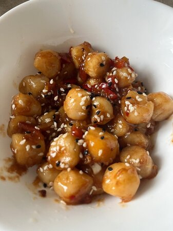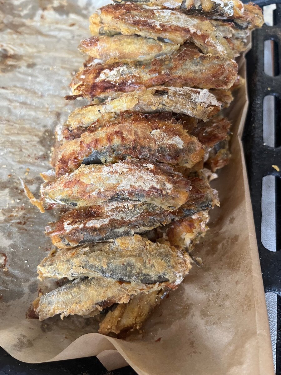Сегодня у меня рыбный день. Я люблю все очень острое, поэтому гребешки в вине и соусе терияки, чеснок и красный острый перец сверху и кунжут. Готовится быстро и по-мне, так это самое вкусное! Из морских обитателей. Но, у меня есть еще забава на вечер, мойва! У нас конечно рыба говнявая в продаже, но что смогла, что смогла! Пахнет вкусно, с соусом тоже, макаю и ем. Нормальненько!