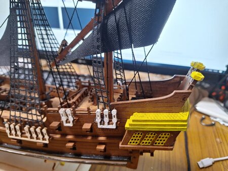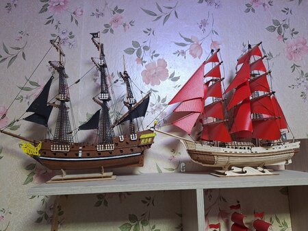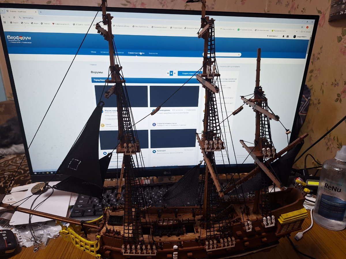 Кэптэн докладывает. Всвязи с предновогодним штормом паруса убраны. Тащ боцман докладывает, что есть неподкрашенное и не натертая медянка на корабле. Всвязи с вахтой капитана завтра, и возможно, окончанием шторма в понедельник. Объявленна 95% готовность. В понедельник, думаю, этот проект закрыть. И начать новый. На "кошках" потренировался - пора на сурьезное переходить. Модель уже есть для сборки.