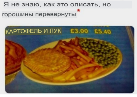 6. Занята она, видать-то. Написано следующее: "Я не знаю, как это описать, но горошины перевёрнуты вверх тормашками". В чём прикол - не понял.