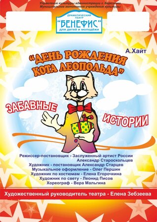 АФИША - Ф Е В Р А Л Ь 2026 7 - суббота - "Золотая антилопа" (6+) - начало 12.00 По мотивам индийской сказки 7 - суббота - "Вовка в тридевятом царстве" (0+) - начало 15.00 Сказка 8 - воскресенье - "Заяц-хвастун" (0+) - начало 12.00 Музыкальная сказка 8 - воскресенье - "Морозко" (0+) - начало 15.00 Сказка 14 - суббота - "Чебурашка" (0+) - начало 12.00 Сказка 14 - суббота - "День рождения кота Леопольда" (0+) - начало 15.00 Забавные истории 22 - воскресенье - "Приключения Буратино" (6+) - начало 12.00 Музыкальная сказка 22 - воскресенье - "Приключения Фунтика" (0+) - начало 15.00 Сказка 26 - четверг - "Метель" (12+) - начало 15.00 По мотивам повести А.С. Пушкина Купить билеты: Телефон:8 (3424) 209 206 касса 8 902 47 37 040 - администратор E-mail: teatr-benefis@yandex.ru Сайт театра: teatrbenefis.ru