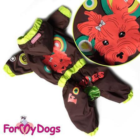 Дождевик "Йорки" на шелковой подкладке, что позволяет сохранить шерсть собаки, а также для мальчиков предусмотрена, затяжка на талии для более плотного прилегания к корпусу.