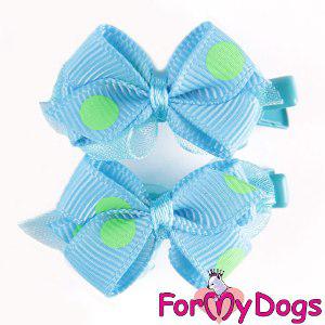 Зажим д/волос "Бантик" голубой в горох (3.5см) 2 шт