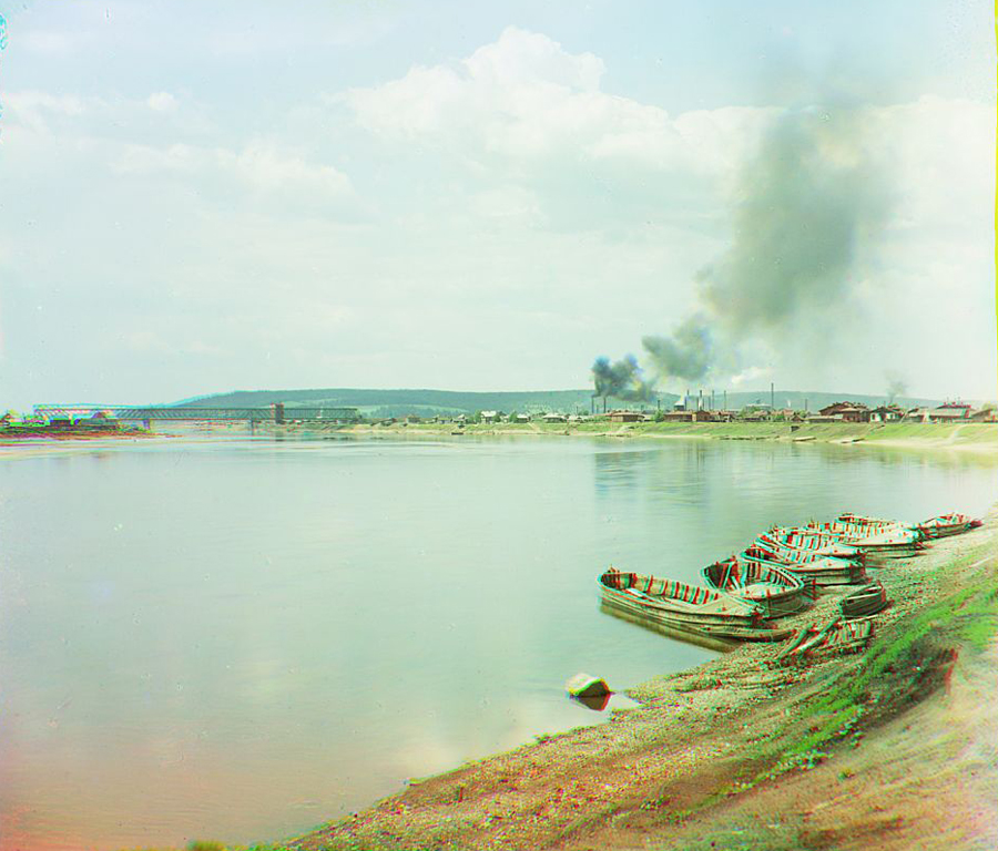 Общий вид на Чусовские заводы и железнодорожный мост. 1912 год