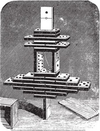 Блин, да эти домики собираются без единой капли клея, держатся исключительно за счёт трения спичек и утолщений в виде серных головок. Сам собирал - знаю. Вот только не помню, как начинается сборка. Народ этим делом дюже увлекался. У некоторых целые крепости были выстроены, особливо смотрелись изделия с применением спичек с краснымии и зелёными головками.1 балл