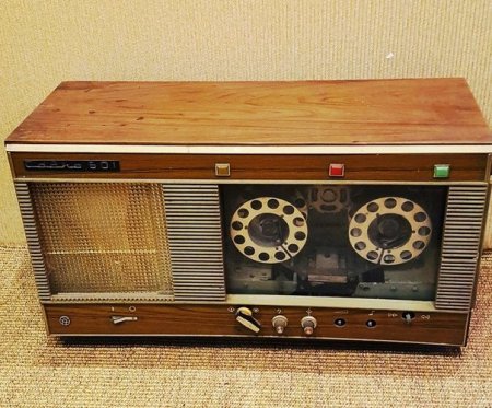 11. 38 - ми дорожечный магнитофон " САДКО - 501 " с 1973 года выпускал Куйбышевский завод имени Масленникова . Магнитофон предназначен для записи и воспроизведения фонограмм на магнитной ленте шириной 50, 3 мм, длиной 300 метров . ЛПМ построен по одномоторной кинематической схеме с применением асинхронного , реверсивного электродвигателя типа КД - 3.5 А . Переход с дорожки на дорожку осуществлялся в автоматическом режиме специальным механизмом перемещения блока головок. Скорость движения магнитной ленты переменная , от 7 до 11 см в секунду. коэффициент детонации - 0.5 % .Длительность непрерывной записи и звучания 12 часов 40 минут . Номинальная выходная мощность 8 ватт. Масса 19 кг. Стоимость 500 р. С 1973 по 1975 год было выпущено 10 тысяч магнитофонов . PS : Честно сказать впервые вижу такого динозавра . "Советский МП 3" .