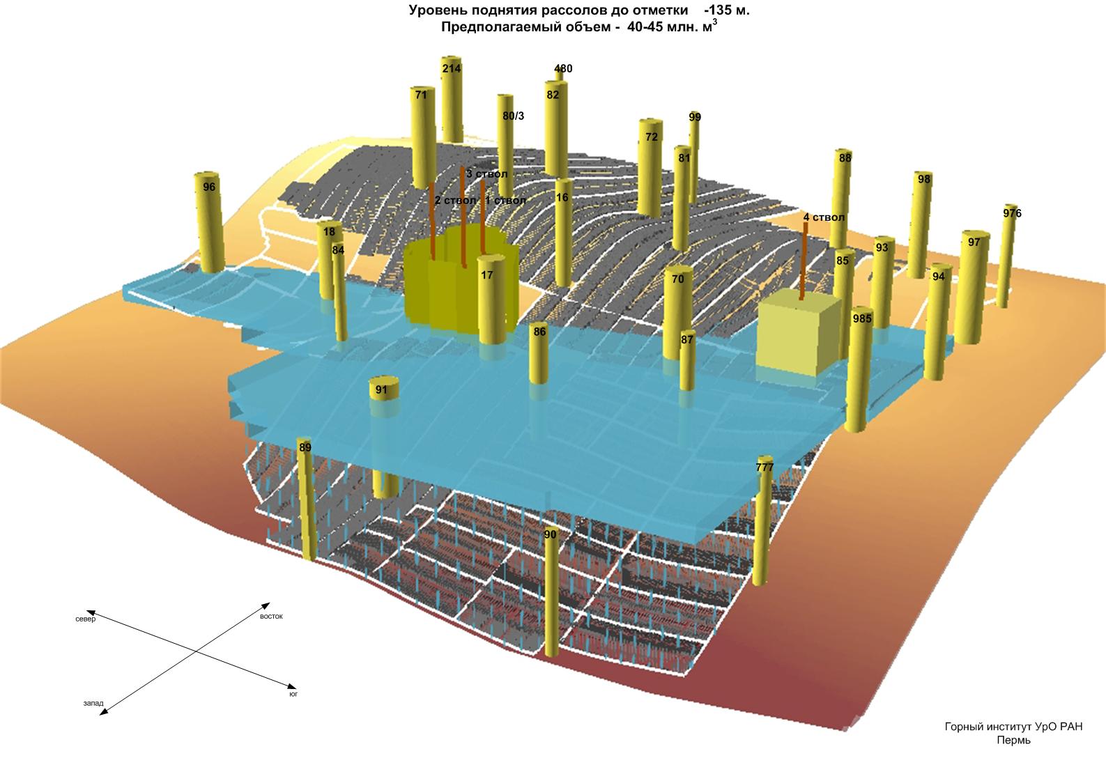 Для того, чтобы иметь возможность построить такие разрезы, надо иметь 3-мерную геологическую модель рудника с нанесенными на нее планами горных выработок. В ноябре прошлого года такой модели у Уралкалия не было. Был заказ одной иностранной компании на ее создание, модель была создана и передана руководству Уралкалия. Насколько я знаю, денег за нее до сих пор не заплатили. Можно чертить любые разрезы и планировать любое бурение интерактивно в 3D с учетом геологии и расположением существующих выработок и т.п. в течение минут. Для прессы и членов правительства сойдут и "Веселые картинки" Красноштейна в одной плоскости. Как можно моделировать затопление и приводить цифры притоков в рудник, если форма и его объем неизвестны? Это все равно как дать ребенку решать задачу как быстро наполнится ванна, но не указать ее размер. Salter Salter, а есть у тебя выход на те структуры, которые заставят руководство Уралкалия делать что-то конструктивное? Я бы тогда связал тебя с теми людьми, кто имеет модель первого калийного. Добавлено спустя 16 минут 1 секунду: Господа не появятся, их от гласности пучит... А на форуме можно нарыть гораздо больше информации, чем в официальных отчетах Уралкалия и Красноштейна. Помню, как брызгали слюной пара роководителей УК, когда их просили предоставить планы горных работ сразу после аварии... мол секрет государственный, все в тюрьму пойдем... А на форуме, пожалуйста, любые планы и отчеты. Жаль, что раньше о нем не знал...