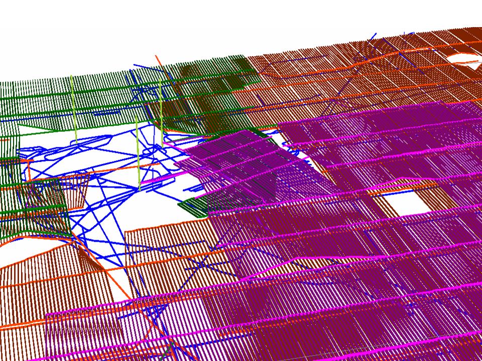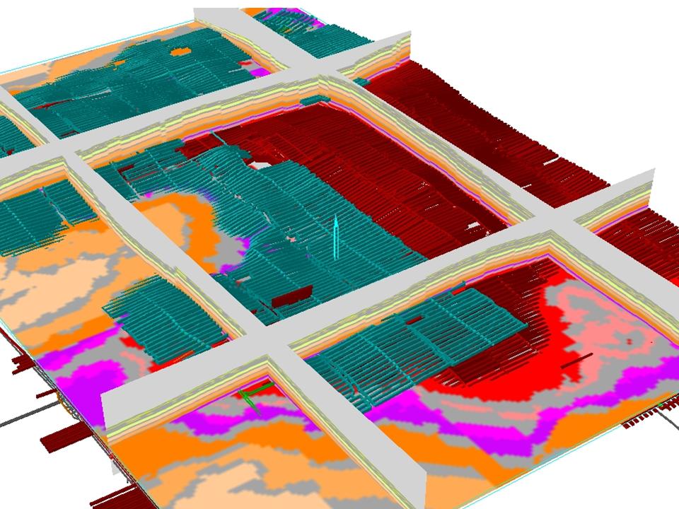 Насколько я помню, разные цвета выработок относятся к разным горизонтам, а вот какой цвет к какому горизонту, тут не мне судить. Хотя мне кажется, что вы правы, если рассматривать пласты сверху вниз. Наверно серый цвет - это околоствольные выработки, под цвет самих стволов, а рыжие - транспортный горизонт (конвейера). Цвета радуги на 4-ом рисунке - это срез пластов под углом, рисунок просто приведен для наглядности. В принципе можно создавать любые разрезы по геологии или по выработкам под любыми углами. Когда-то Salter об этом мечтал. Что такое Биг Бен по центру не знаю, может быть какая-то пометка? А может стволы сливаются, ведь на этом рисунке изображен весь рудник (примерно 10 км х 10 км). Цвет значения не имеет, можно менять раскраску, если хочется что-то выделить. То, что у Красноштейна всё понятно, совсем не значит, что у него всё правильно. Выложенные мною рисунки наглядно показывают, что рудник - это сложная связанная трехмерная система, а не простая поверхность. Поднимите мои прошлые посты и прочитайте, что я писал раньше. Кстати, опять же насколько я помню, данная модель может показывать время затопления каждой выработки при определенном притоке, а также примерное место образования газовоздушных пузырей. Более того, модель затопления можно калибровать по мере поступления новых данных. Точно также по поводу привязки к местности. Её можно привязать или по стволам, или по планам горных работ или по разведочным скважинам, указанным на рисунке 2. Было бы желание. Была бы у меня эта модель, и знал бы я как с ней работать, то понастроил бы вам много чего в ясном и понятном формате. Канадцы демонстрировали её возможности весьма наглядно. А приведенные картинки - неживые, а взяты ... ну, скажем, из презентации. ПО каким-то причинам УК выбрал плоскостную модель Красноштейна, видимо, считая, что она даёт достаточную точность. Или были другие причины...
