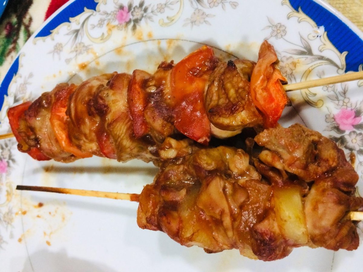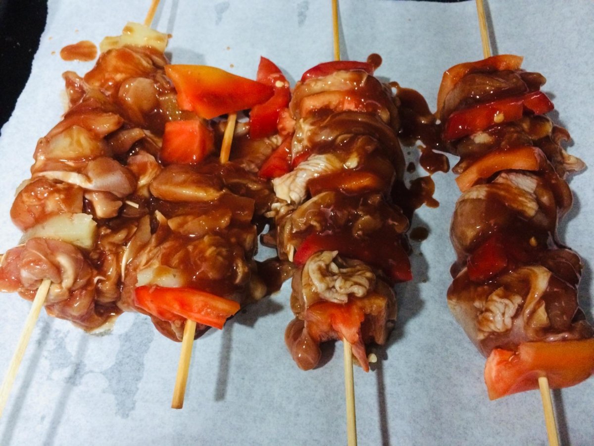 ну поехали!! гулять так гулять! сегодня на ужин пирожок с осетриной по случаю) ещё в духовке стоит куриное филе с ананасами и пр овощами на шпажках,попозже закину результат)) шпажек не хватило,оказалось что осталось пара штук,взяла охотничьи спички и отломила,вот и шпажки.. и всё чики пики,это ж мой муж,он всё сьест вообщем успела только на тарелке запечатлеть,ушли на ура!!