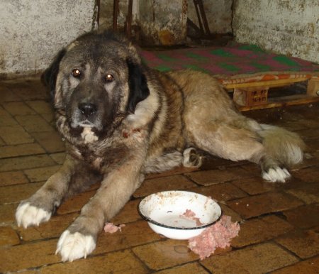 Этот Чауш жил в приюте, стерилизован, но в один прекрасный момент ушел с цепи, недели две возвращался перекусить и поспать, сейчас уже не приходит, видимо хватает подкормки в городе. Парень неконтактный, к себе никого не подпускает - рычит, поэтому его особо не предлагали, а таких, кто умеет обращаться с породой не нашлось :oops: