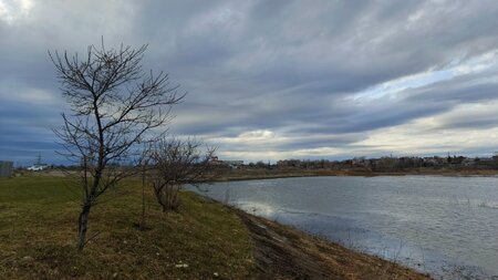 Интересная картина получается, первый пруд спустили, построенные водосливные трубы не справляются с весенним половодьем. Природа берет свое и водоем постепенно возвращается в свои границы. Очевидно, каждую весну жители города будут лицезреть появление, а затем и исчезание первого городского пруда. Кстати на пруд прилетели лебеди.