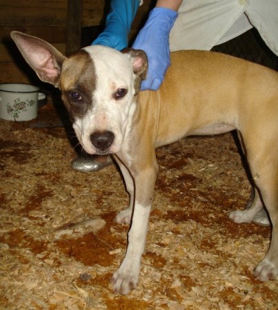 Ветврач тоже так говорит, но вот думаю, вдруг побоятся стафорда брать, они же агрессивнее питов, а Стефа ну такая умничка и ласковушка....несчастливая судьба стафов в нашем приюте, за редким исключением... Может быть порода в данном случае не имеет очень большого значения? А????? Спасибуще, Роман!!!! Ничего не перепутано, Стефани ну такая красотка, загляденьице!!!! Вот такой она к нам поступила 3 месяца назад... Почему то листовки распечатываются только в половину формата :lol: и телефон вообще не видно, может быть надо оставить один телефон, без имени...Марина обещала партию распечатать, и будем раздавать для расклейки =D>