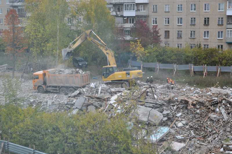 Сейчас рассмотрел технологию сноса дома. Эскаватор роет яму на дне того, что было подвалом, потом засыпает строительный мусор и заваливает вынутым грунтом. Вот такие "консервы" получаются...