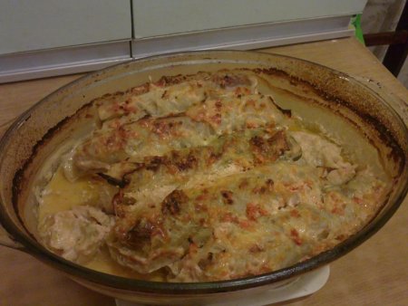 Голубцы с фаршем. Конвертики было лень делать, накрутила рулетиками и запекла в духовке.