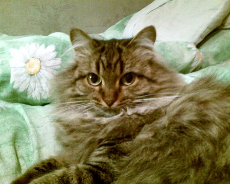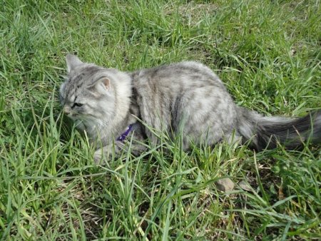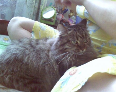 Что то тут всё о собаках да о собаках.....а про кошечек то совсем и позабыли!) Ведь они ни чем не хуже собак, даже в чём то лучше)) Давайте поговорим именно о кошках, расскажем и покажем про наших питомцев. Ну я пожалуй начну....у меня дома два кота и одна кошка + собака. Вобщем весело живём. Кошечка моя сибирской породы, а коты домашней породы. Ну коты вобщем не мои, а моей сестры. Так что я вам про мою кошечку расскажу) Ей сейчас 3 года и её зовут Тигра. Тигра очень активна, не смотря на свои годы. Я её даже выдрессировала и она знает команду сидеть и лежать. Очень любит ловить летом кузнечиков, бегать за камушками и за палочками. При чём палочку ей кидаешь и она её обратно приносит. Мы с ней спокойно гуляем на улице и иногда гоняем собак)):lol: Вобщем вот такая у меня чудо-кошка