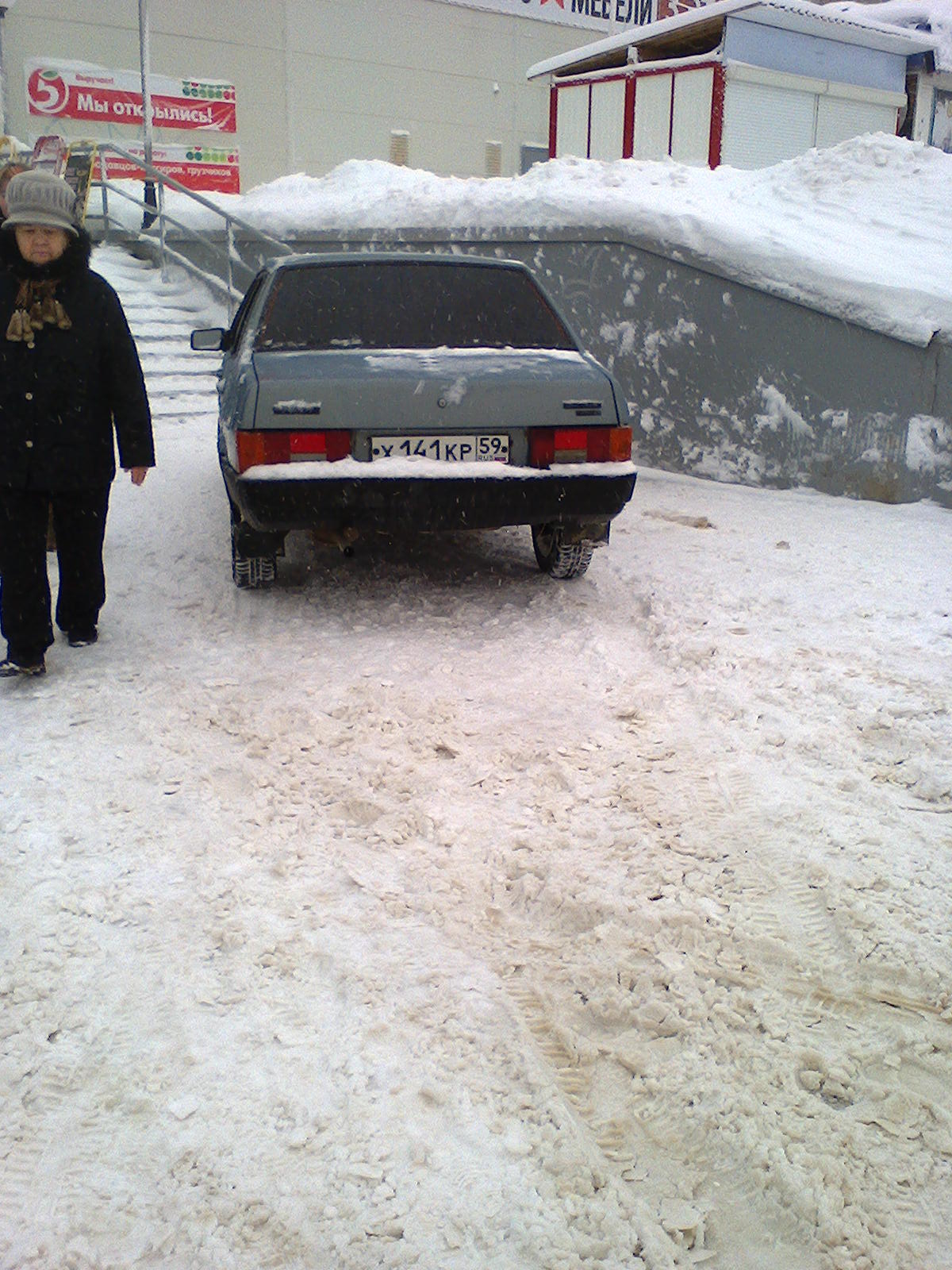 нормальный ли это водитель???? поставить машину прямо перед ступеньками.совести нет!может и кто-то другой залумается