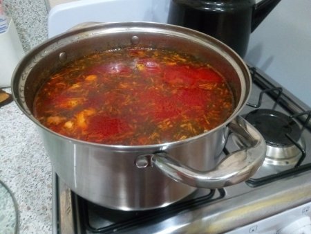 А у меня вчера. Пятилитровая кастрюля настоящего борща, для много работающих подруг. Три часа, Карл! Наварила, ушатала себя вусмерть и даже не попробовав( будь она неладна, та диета) умчалась в ночь, прочь из культурной столицы. Чтобы дома, в моих беленьких и розовеньких Березниках навернуть тарелочку "правильного" плова, приготовленного для меня мужем. Как же хорошо дома.