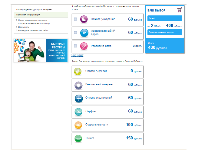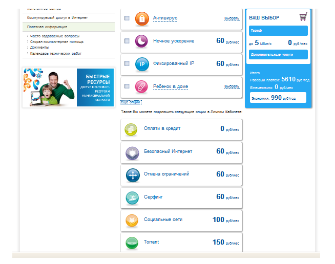 посмотрел на сайте РТ список услуг (опции) которые можно подключит платно к любому действующему тарифу. "Скорость на максимум" и прочие опции как-то связанные с увеличением скорости просто отсутствуют (фото в низу). Как опцию подключить первый месяц платно, а потом бонусами, если ее просто нет ? Еще раньше в рамках акции "Домашняя Четырешка" можно было скорость увеличить в 2 раза. Короче сейчас: И цена на интернет подорожала И бонусы по интернету порезали И "Домашнюю матрешку" урезали Какая-то супер жадность, клиентов вообще не бояться потерять.... Перейдут люди на другого провайдера, потом РТ будет придумывать акции для привлечения новых клтентов....