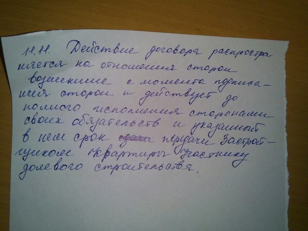и причем это все так быстро заставляют делать: вызывают для заключения договора, в течении часа вносят изменения в пункты и потом за 5 минут говорят подписать, типа 1 час на договор!воще охренели ругаться не хотелось, а пришлось. Все таки покупаем квартиру а не что либо