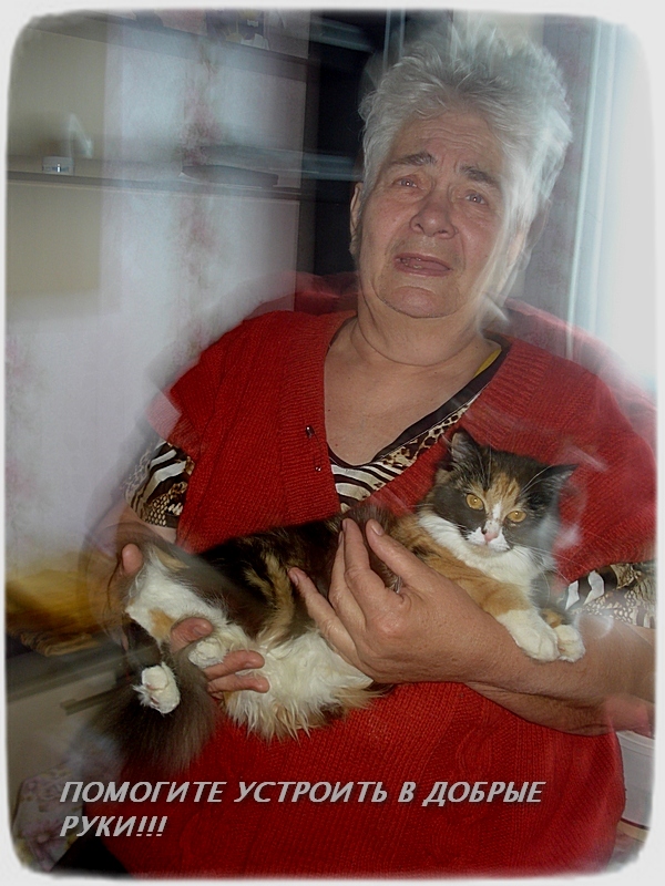 Зинаида Тимофеевна – инвалид, недавно перенесла инсульт и не выходит из дома. Очень любит животных и на ее попечении находится котейка восьми лет от роду, но она не забывает и о братьях наших меньших, которые проживают на улице, и подкармливает их, кидая еду с балкона, так как ноги почти не ходят и ей трудно передвигаться. Как обычно, соседи ругаются, но она делает свое доброе дело поздно вечерком, чтобы никто не видел, а с утречка проверят, и радуется, что все съедено. Пару месяцев назад во дворе дома появилась кисуля. Зинаида Тимофеевна сразу обратила на нее внимание. Даже не потому, что кошечка очень красивая, просто ее обижали другие, более приспособленные к улице сородичи. Но, когда она увидела, что ее подопечную чуть не разодрали собаки, она заплатила соседним мальчишкам и попросила их отловить малышку и принести ее к ней домой. Вот тут-то все и началось. Котофей взбунтовался против нового приобретения и всячески демонстрировал свое недовольство, обижая и гоняя Лелю, так Зинаида Тимофеевна назвала кошечку, по всей квартире. Беда лиха начало, но в дополнении к бунту усатого домочадца, категорически против пребывания еще одного животного в квартире выступила и дочь женщины, настаивая, чтобы мама вернула Лелю на улицу. Зинаида Тимофеевна плачет и говорит, что даже представить не может, что бы выбросить полюбившееся ей животное на погибель. Кошечке около полугода – умная, ласковая, сразу пошла на лоток, не привередлива к еде. Возможна стерилизация. ОТЗОВИСЬ ЧУТКИЙ, ОТЗЫВЧИВЫЙ, который имеет хоть малейшую возможность приютить эту кису. Леля – богатка - трехцветного окраса и непременно принесет счастье в Ваш дом!!!! Уже даже жалко не столько кошечку, сколько саму Зинаиду Тимофеевну. Пришла беда, отворяй ворота. Все же решила написать еще об одном событии, обрушившимся на голову бедной женщины, хотя и не по теме. На днях Зинаиде Тимофеевне позвонила знакомая и предложила взять постояльцев на пару недель – двух женщин среднего возраста: одну русскую, другую вроде узбечку. Как обычный статистический пенсионер в нашей стране, Зинаида Тимофеевна нуждается в средствах, поэтому согласилась. Но женщины оказались мошенницами и видимо, действуя гипнозом, выманили у нее всю, только, что полученную пенсию и золотые изделия, которые были в квартире. При обращении в милицию выявилось, что нерусская женщина находится в розыске по Интерполу. Вот такая непростая ситуация: Зинаиде Тимофеевне по состоянию здоровья совсем нельзя нервничать, а она круглосуточно плачет… Девочки, которые умеют, пристраивать кисок… ПОМОГИТЕ, ПОЖАЛУЙСТА!!! 898-225-04-204 Нина Алексеевна третий год подкармливает бездомных животных, и она поведала о том, что бедолагам очень сложно выживать на улице, потому что помимо холода и голода, ее подопечным грозит еще одна опасность. В ее районе проживают люди, которые издеваются над беззащитными животными, заставляя умирать их мучительной смертью. Однажды она спасла Белочку, которую душили подростки, и забрала ее к себе домой, а недавно она подобрала еще одного котика – Кешу. Все бы ничего, но у котика вместо шерсти пух, видимо породистый, а у Нины Алексеевны аллергия. Она переживает, что может ослепнуть, потому что глаза постоянно слезятся и зрение падает. Котик действительно роскошный, кастрирован, ходит в лоток, но любит прогуляться и по 