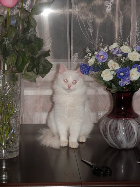 1. Бело-рыжий Ларс. Подобрала подростком. Сейчас ему 5 лет. У него удивительные светло-серые глазища. Врачи говорят непрокрас глаз. Генетический брак. В остальном, слава богу, относительно здоров. Правда, бывают аллергические реакции.