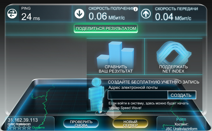 vezderegit Опубликовано 24 января, 2012 Опубликовано 24 января, 2012 Первые впечатления от интернета. О, как так вроде интернет не подключен, а грузит че то. Нука проверю мозилу. Открываю мозилу, смотрю журнал - вроде коненкт какой то есть. Смотрю сеть - соединено. Интернет появился значит. Вроде телефон не подключен еще даже. Нука отключу телефон - интернет есть. Значит это не телефон. Захожу на ютел сайт пробую авторизироваться - не получается. Пробую без семерки - не получается. Че то сайты долго грузятся ктати. Смотрю скорость 5кб/сек не превышает. Захожу под своим аккаунтом в ютел. Пробую порисоединить интернет - не получается, пробую снова - не получается. Захожу на берфорум - загрузка идет минут пять. Сижу жду. 0 сообщений. Выхожу. Иду на спидтест. Тем временем открываю цмд. Ввожу пинг ввв.ру. Пишет результат минимальное 1936мсек. Максимальное - 3975 мсек. Среднее 2799мсек. По договорю помнится было написано не выше 400. 25процентов потерь. Пингую спидтестом пинг 26мсек. Скорость получения 0.06. Скорость передачи 0.04. Скрины прилагаются. Перезагрузка полная системы и прочих устройств. Скорость та же. Пинг 30мсек. Передергиваем кабеля, подключаем один модем. Снова тест на спидтест. Пинг 30мсек. Содинение.... жду...снова жду, о пошло пошло пошло - 0.06. Передачу не стал ждать. Очень долго. О да, я о такой оптике только и мечтал. Ушел на телефон обратно. Причем тесты все проводил днем!!! Последняя картинка тест спид мобильного интернета. Без 3г.
