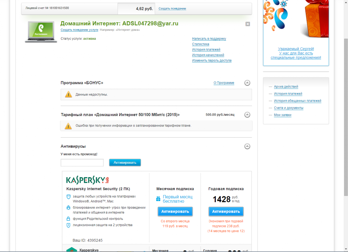 Kiorrio Опубликовано 22 декабря, 2015 Опубликовано 22 декабря, 2015 В личном кабинете невозможно выбрать тариф: Ошибка при получении информации о запланированном тарифном плане. Появилась эта надпись после того, как я зашел в меню выбора тарифа, нажал на новый тариф "Игровой 100", а потом нажал отмена.