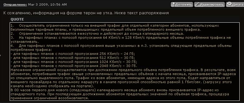 aisberg Опубликовано 4 марта, 2009 Опубликовано 4 марта, 2009 это все еще покак слухи!!!......легче позвонить в их к@нтору и спросить , чтобы потом не удивляться когда скорость убавят.