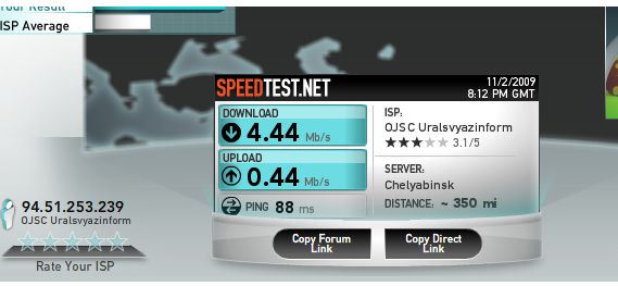 jimm031 Опубликовано 3 ноября, 2009 Опубликовано 3 ноября, 2009 (изменено) А на микс с опциями только через заявление и можно было перевестись. Опции работают, если они включились(см. свой тариф в кабинете) только с кольцом проблемы. Я че-то не поняла Джимми? Мне надо с этим что-то делать или радоваться тому, что есть? :mrgreen: У тебя же макси, у меня тоже. Судя по твоему замеру до Перми, у тебя нет быстрого кольца, как и положено по тарифу Макси, у меня почему-то есть постреляй ещё по кольцу: Пермь, Челябинск, Сургут, Катер(когда предлагает УСИшный сервер) может лучше скорость будет. Изменено 3 ноября, 2009 пользователем jimm031