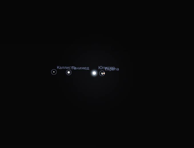 Fomalhaut Опубликовано 4 августа, 2009 Опубликовано 4 августа, 2009 Сегодня в ночную смену нашёл за щитами нивелир,а в небе как раз Луна всходила полная почти и Юпитер хорошо виден был. Понятное дело, такоего шанса упускать нельзя. Снимки делал путём прикладывания объектива N73 к окуляру нивелира. Качество соответствующее: Наведя нивелир на Юпитер, увидел его как светлое пятнышко или шарик. Но после того как подстроил резкость и немного ушла дымка я совершенно отчётливо разглядел 4 спутника Юпитера: Ганимед, Каллисто, Ио и Европа! Ганимед различался отлично, Каллисто немного похуже, а вот Ио и Европа практически сливались, но все равно видны были раздельно. Ощущения не передать словами! Снимок получить не удалось, но сделал скрин с проги Stellarium (нижний снимок)