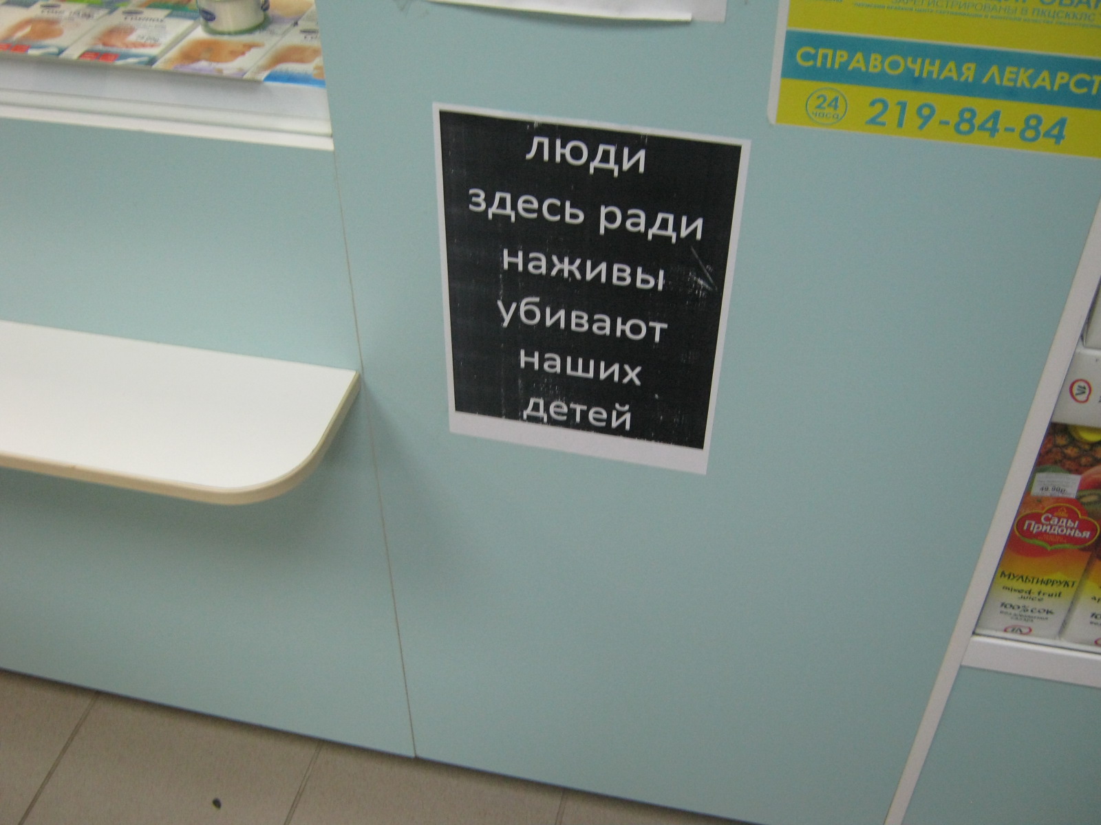 Алёна77 Опубликовано 14 сентября, 2011 Опубликовано 14 сентября, 2011 Другие уже есть! Но сотрудники аптек, конечно, не сами нажимают курок - они просто подносят патроны! Может быть, я не совсем понятно донесла мысль, поясню: руками и ногами поддерживаю инициативу, как, наверное, любой здравомыслящий человек. Просто надо как-то сделать так, чтобы основной потребитель аптек - пенсионеры, глядя на ваш плакат, передумали идти в эту аптеку, а пошли в другую. Знаю, что критиковать легко, а предложить что-то дельное сложно. Извините если что.