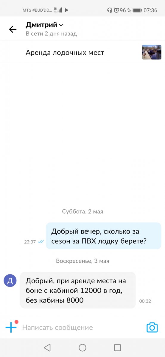 Настаська Опубликовано 5 мая, 2020 Опубликовано 5 мая, 2020 За место лодка пвх привязана к берегу и кабина 10, бон и кабина 12, месяц пвх на боне 1,500, сезон на боне пвх 8.