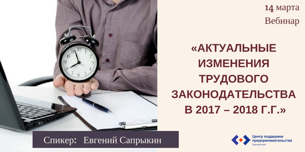 FOX Опубликовано 13 марта, 2018 Опубликовано 13 марта, 2018 Вебинар "Актуальные изменения трудового законодательства в 2017 – 2018 г.г." 14 марта 2018 года в Перми состоится вебинар "Актуальные изменения трудового законодательства в 2017 – 2018 г.г.". Трансляцию мероприятия организует Верхнекамская ТПП на своей базе (г. Березники, ул. Юбилейная д. 17). Обязательная регистрация по эл. почте: VKTPP@yandex.ru (ФИО, организация, должность, телефон) Организатор вебинара: Пермский фонд развития предпринимательства по заказу Министерства промышленности, предпринимательства и торговли Пермского края Спикер вебинара: Евгений Сапрыкин, юрист, преподаватель, автор семинаров и статей по трудовому праву Начало вебинара: в 10.00 Участие: бесплатное. Вопросы вебинара: * Изменения трудового законодательства в 2017-2018 г.г. * Изменение существенных условий трудового договора * Срочный трудовой договор в помощь бизнесу * Особенности правового регулирования рабочего времени и времени отдыха * Дисциплинарная и материальная ответственность сторон трудового договора Уважаемые коллеги! У вас есть уникальная возможность во время вебинара, в режиме онлайн, получить консультацию эксперта по вопросам, интересующим именно вас. Присылайте до 13 марта свои вопросы по теме вебинара на электронную почту VKTPP@yandex.ru с пометкой "Вебинар 14 марта" и во время вебинара эксперт ответит именно на ваши вопросы. Приглашаем предпринимателей, руководителей, юристов, специалистов кадровых служб принять участие в вебинаре!