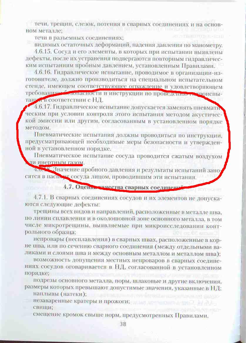 check Опубликовано 28 октября, 2011 Опубликовано 28 октября, 2011 (изменено) любой газ подвержен температурным расширениям, при чем коэффициент расширения ВСЕХ газов одинаковое. Учите физику. А на производствах, испытания сосудов проводят не газом, а водой (или иной жидкостью), потому что она не сжимаема. Испытывать сосуды давлением газа категорически запрещено. Потому что в случае разрыва сосуда жахнет так, что мало не покажется. А если сосуд порвет с водой, то ничего не будет. Не поленился, отсканировал ПБ 03-576-03 (Правила устройства и эксплуатации сосудов): Инертный газ (азот) безопаснее из-за пирофоров внутри нефтяных емкостей. Могу заверить, что пневмоиспытания действующих сосудов проводятся и довольно регулярно. Но от темы мы немножко отклонились. :) Накачка автомобильных шин азотом В последнее время все большую популярность приобретает накачка автошин азотом. В чем преимущество азота перед воздухом? Отсутствует окислительный процесс металлокорда шины. Кислород, содержащийся в атмосферном воздухе, является окислителем, а высокая влажность внутри покрышки, накачанной воздухом, приводит к конденсации влаги при перепадах температур. Вместе эти факторы приводят к коррозии металлокорда, следовательно, уменьшают срок жизни покрышки. Влажность азота близка к нулевой, к тому же он не является окислителем. Давление в шине, накачанной воздухом, резко меняется в зависимости от текущей температуры шины, а летом, естественно, это давление достигает максимальных величин. Коэффициент теплового расширения воздуха велик, поэтому для колеса легкового автомобиля повышение давления в разогретой после движения шины может достигать 0,5 - 0,8 атмосферы. Под нагрузкой малейшая шишка на покрышке автомобиля или серьезный прокол может привести к взрыву, причем если лопнет переднее колесо, то результат будет непредсказуемый. Для азота коэффициент теплового расширения гораздо ниже: давление в шине в результате разогрева меняется лишь на 0,1 атмосферы, следовательно, азот обеспечивает стабильное давление внутри шины при любой температуре. http://it-gas.ru/azot.html Вроде сурьёзная контора пишет. Изменено 28 октября, 2011 пользователем check