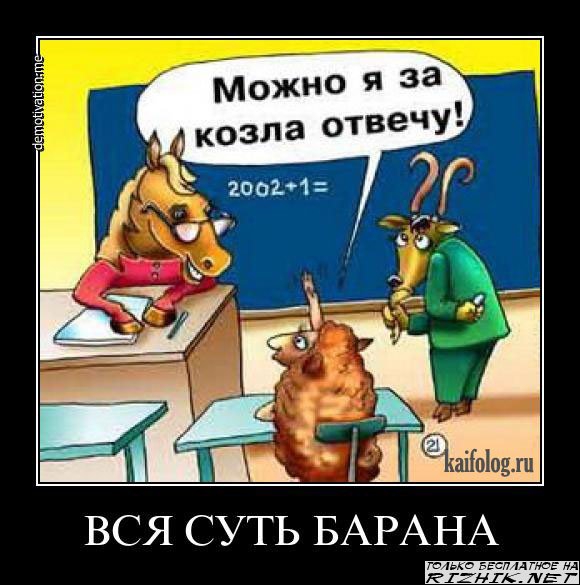 Малышка Опубликовано 14 мая, 2015 Опубликовано 14 мая, 2015 — Здравствуйте, дети. Тема сегодняшнего урока — «Откат». Кто мне скажет, что такое откат? — Откат — это денежный эквивалент благодарности за то, что в тендере выбрали именно нашу фирму. — А что такое тендер? — Тендер — это чемпионат отрасли по откатам. — Молодец, садись, шесть. Четыре тебе и два ты сам знаешь куда. *** Записываем условие задачи. У Вани было 5 яблок. По документам. По факту 3, а по договору 7. Вопрос: сколько яблок будет у того, кто проверяет Ванину хозяйственную деятельность? *** Следующий вопрос. Влияние родственных связей на коррупцию. Сережа, отвечай. — Я не выучил. — Садись, пять. — Спасибо папа. *** — Кто приведет мне примеры коррупции в истории? Никто не знает? Гоголь «Мертвых душ» сколько томов написал по документам? Два. А сдал? Один. Где второй? Сгорел! Теперь вы понимаете, почему у нас новый компьютерный класс сгорел? И почему спортзал скоро сгорит? *** И последний вопрос. Назовите мне идеальную отрасль. — Нанотехнологии! — Почему? — Потому что деньги тратятся на результат, невидимый человеческому глазу! — Молодец! — Не забудьте сказать родителям сдать по 500 рублей на ремонт класса. — Опять по 500! — Мне сдадите по 300. Не бойтесь, если родители будут спрашивать, скажу, что собирал по 500. Замётано? ***