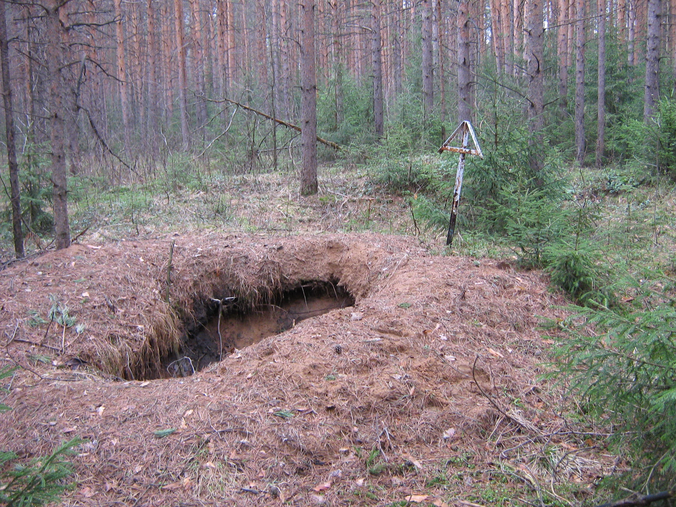GARRY6490 Опубликовано 3 мая, 2010 Автор Опубликовано 3 мая, 2010 (Продолжение) Слово за слово, .... по столу... доехали наконец до того места, где совместными усилиями и после мозгового штурма решили свернуть в чащу леса (сказалось многодневное бдение над картами - они стояли перед глазами). Какое счастье - иметь могучую НИВУ. Несмотря на то, что дорога была скорей похожа на направление, она легко справлялась с лужами и колдобинами. Сначала всё же зарулили не туда. Но, исправив АшЫПку и выбрав немного иной путь, выехали в искомое место... :shock: Сказать что мы были поражены - это значит ничего не сказать. Зрелище не для ночных заплутавших грибников. Памятники посреди леса, ямы... Надписи на отдельных вполне читались. Насчитали 7 памятников. Наверно это всё, что там осталось... Одна даже очень ухоженная могила... и почти свежие, прошлогодние ямы... Старый памятник в виде нефтяной вышки... Года смерти - 1948, 1944, 1942. Самая "молодая" из найденных - 1953 год. Однако... Хоронили, оказывается, не только в Кропачево с 1940 года... Видимые размеры - метров 70 на 100... Могилы все правильно ориентированы - памятники в ногах на востоке. (Продолжение следует) PS Два снимка удалено по причине создания из них панорамы. Зри далее...