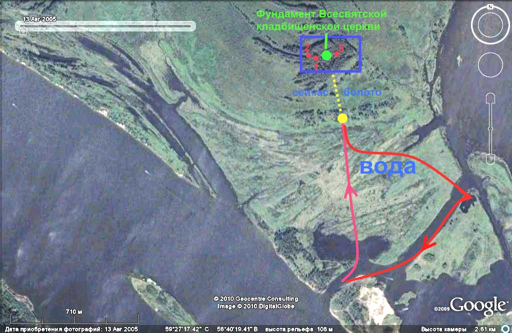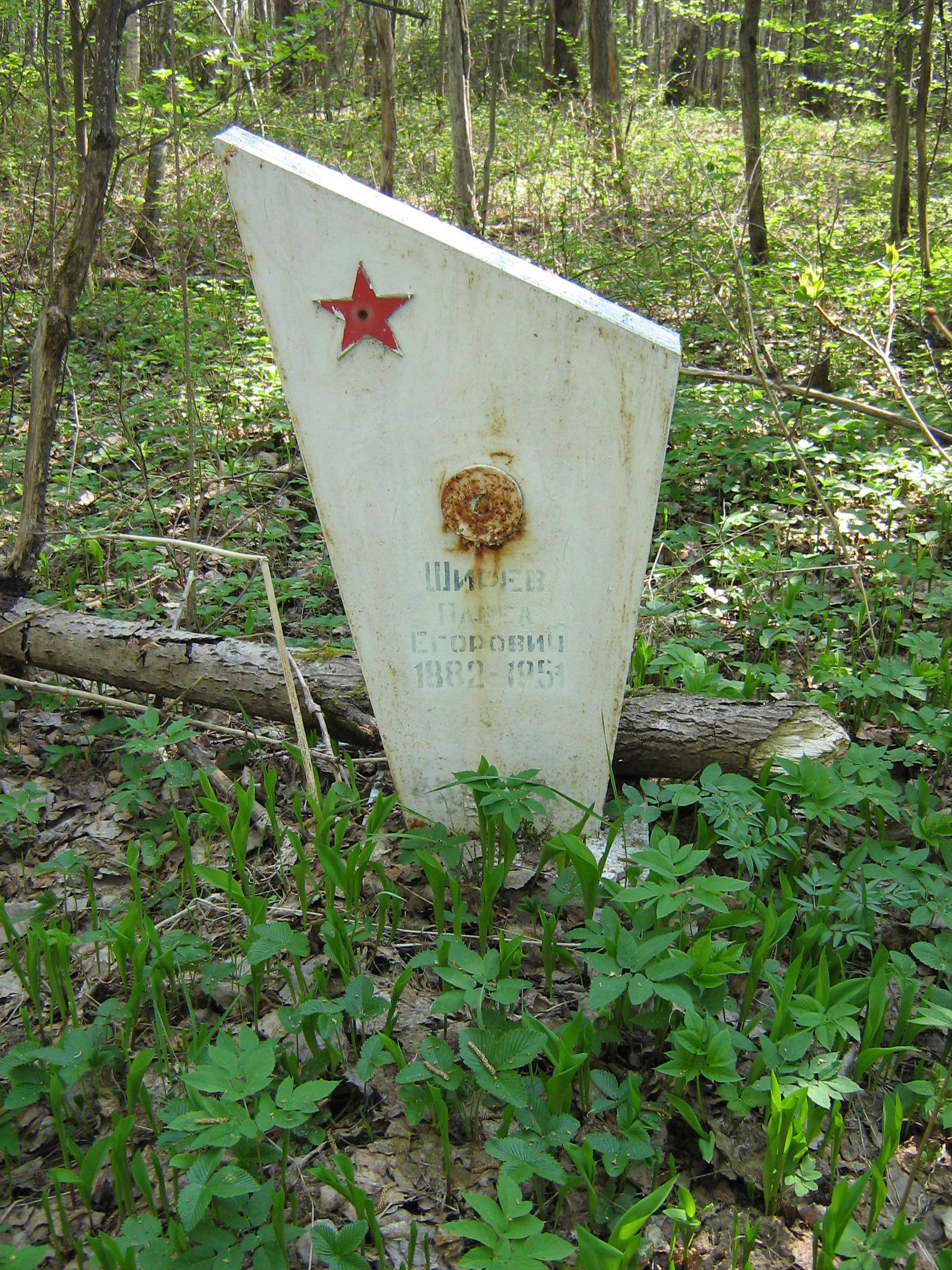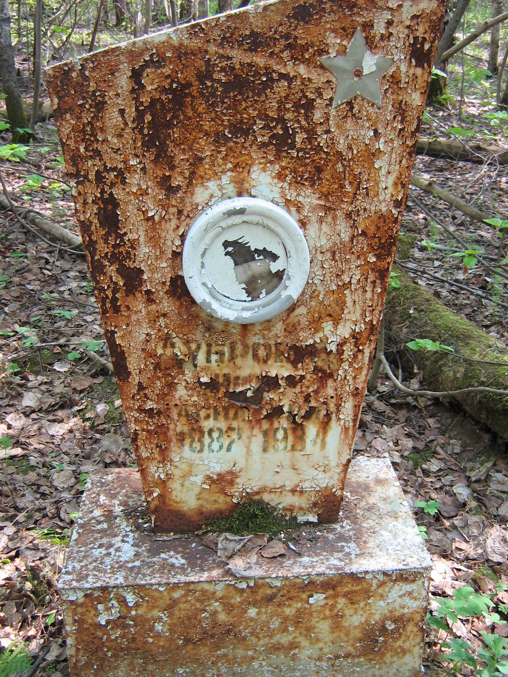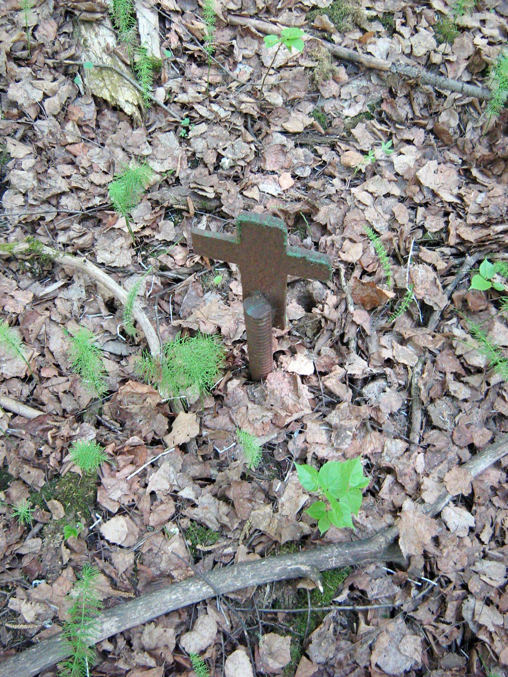GARRY6490 Опубликовано 14 мая, 2010 Автор Опубликовано 14 мая, 2010 Ну вот, вроде разобрался с подготовкой отчета и можно приступить, помолясь. Итак, около 12 дня мы прибыли в район дедюхинских причалов, где уже удобно с удой расположился очень удобным образом уважаемый Rum, благосклонно согласившийся посторожить машинку Затворника вполглаза. Другим полглаза стал друг Затворника Слава, ибо рыбалка им важнее. :dada: Ну и нашим легче. Лодка была быстро накачана и спущена в воду. В 12-20 экспедиция началась. Главным гребцем оказался Затворник, так как я оказался начисто лишенным таланта к этому. :roll: Стоило мне взяться за весла, как лодка начинала выделывать такие кренделя, что во избежании участи Титаника было решено отобрать у меня сии опасные предметы. :( Выбрав истинный путь, двинулись напрямую к дедюхинскому погосту. Вода оказалась вполне приличной и обошлись одним незначительным волоком через незатонувшую гриву. Благодаря исправно работавшему GPS вышли в максимально близкую точку, от которой пришлось уже двигаться пешим ходом по слегка болоту. Проплыли где-то 1 км минут за 30. Пешим около 250 метров по кочкам, по водичке. (И всё же я был прав, обувшись в кроссовки, а не сапоги - двигаться было очень удобно и совсем не холодно, вопреки предупреждениям. Зато польза оказалась несомненная - отмокли все мозоли. :lol: ) Выбравшись на сушу, осмотрелись. Но к своему огорчению ничего не увидели сразу. Внимание привлекла вполне культурная канава с насыпью. Было предположено, что это и есть периметр погоста, что подтверждал GPS. Но с надеждой двинулись вглубь. И надежды оправдались, хоть и не так сильно, как в Чкалово и Ленве. Сначала попались два памятника. Один просто ржавый, а на другом сохранилась надпись. Это будет точка 1. Дата смерти - 1951 год. Потом наши пути разошлись. Я пошел по насыпи периметра, высматривая артефакты. Нашел, но уже не в читабельном и смотрибельном состоянии. Лежащие памятники было уже плохо видно под нанесенной листвой и другим мусором. Но тем не менее характерные ноги отличали их от простых железяк. Это есть тотчка 2. Затворник в это время, следуя своим путем, наткнулся на фундамент, в котором мы опознали фундамент Всесвятской кладбищенской церкви, которая была перевезена жителями и установлена на месте нынешней школы 17. Статья про это находится здесь. Зелёная точка в центре. Фото места у Затворника. Обойдя практически весь периметр, мне больше ничего не удалось найти. Судя по всему, это кладбище зачищалось намного лучше, чем два предыдущих. Было обнаружено всего 2 реальные могилы и ни одной однозначной ямы. А кладбище было большое и старое. Другие находки (точка 3) сделал Затворник в районе фундамента. Я же только запечатлел их на всякий случай. Некто умер аж в далеком 1934 году. Другой артефакт оказался несколько странным. На загнанную в землю толстенную периодическую арматуру был приварен крест с наваренными буквами. Честно говоря, трудно даже что-то предположить по этому поводу. Может геоточка, а может и памятник такой... Также возле фундамента была найдена могильная плита-клумба, но уже без верхнего памятника. Сама эта конструкция сделана из армированного бетона, что несколько удивило. :lol: Раньше (судя по Кропачево), в 40 годах, памятники вообще делали из кирпича. Но вот тут таких найдено не было, даже следов. Ну вот, от меня в принципе всё про это место. 
