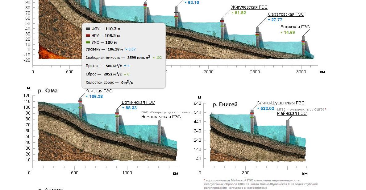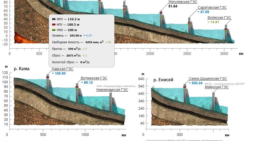 val58 Опубликовано 12 февраля, 2016 Опубликовано 12 февраля, 2016 (изменено) Всем привет.Сброс воды на Камгэс совпал с активизацией клева и рыбной активности. А может и случайность.Будем ждать очередного сброса. ФПУ - Форсированный подпорный уровень, предельная отметка наполнения водохранилища при прохождении половодий редкой повторяемости, м НПУ - Нормальный подпорный уровень, отметка заполненного водохранилища, м УМО - Уровень мёртвого объёма, отметка предельной сработки водохранилища в зимний период, м Уровень - Текущая отметка уровня воды в водохранилище на 8:00 (МСК), м Свободная ёмкость - Объем между текущим уровнем и НПУ, м3 Приток - Количество воды, поступившей в водохранилище за предыдущие сутки, м3/с Сброс - Количество воды, пропускаемой через гидроузел (турбины и водосбросы), м3/сек (среднесуточное значение) Холостой сброс - Количество воды, сбрасываемой через водосбросы мимо турбин, за исключением воды, затраченной на шлюзование, м3/с (среднесуточное значение) Изменено 12 февраля, 2016 пользователем val58