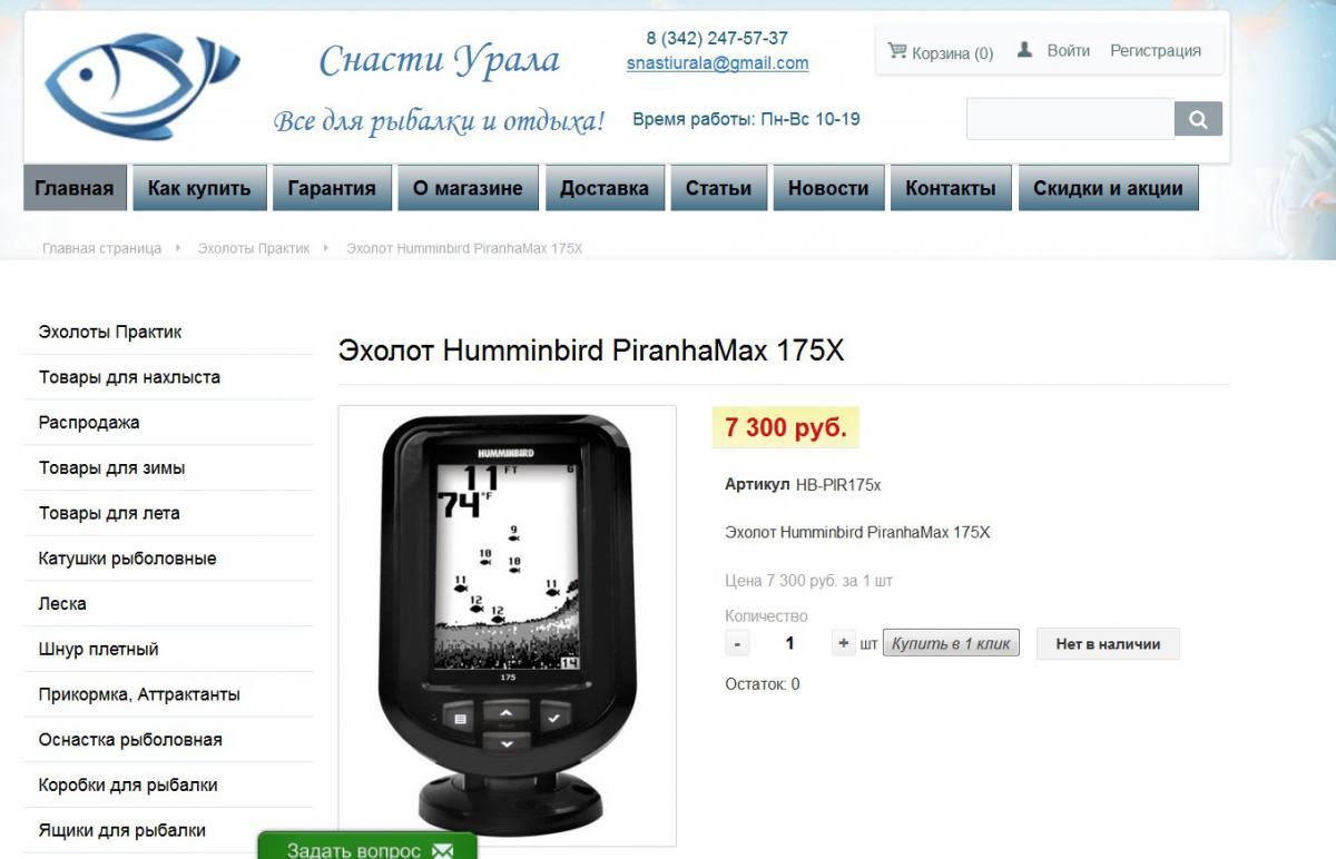 Иваныч Опубликовано 23 апреля, 2016 Опубликовано 23 апреля, 2016 Начинаю не спешно готовиться к лету. В планах - приобрести спинн подходящий именно под мою рыбалку, а так же вместо забарахлившего эхолота, прикупить новый, но уже не батарейках, коих хватает на пару рыбалок и то, не всегда, а с питанием от аккумулятора. Если с выбором палки проблем нет, то вот с эхолотом ни как не определюсь. То, что двух лучевой, это однозначно и не обязателен цветной дисплей. А дальше - тёмный лес! Посмотрел в тырнете, выбор большой, пожалуй две модели самые ходовые - Lowrance и Humminbird. Но у них стока разных моделей, глаза разбегаются. Вообщем, друзья мои, пжалста, мне для гребной гондульки присоветуйте чо-нить, без дальнейшей перспективы использования на моторках. Бэушный юзать чот очково, мало ли что. Потом с кого спрашивать? В рыболовных магазинах выбор не большой, по одной штуке. А где-то у нас ещё можно посмотреть или заказать конкретную, всем миром присоветанную модель? Геннадич так я у Серёги брал,тогда у него самый дешёвый нашёл, спроси,может привезёт снова. Или Пермь,вот адреса магазина "Снасти Урала", Адрес : г. Пермь, мкр. Садовый, ул.Уинская, д. 9, магазин "Белуга" Адрес : г. Пермь, мкр. Гайва, ул. Вильямса, д. 37, стр. Б, магазин "Рай Рыбака" Электронная почта: snastiurala@gmail.com ICQ Консультант: 625-339-571 Телефон: 8 (342) 247 57 37 Телефон: 8 (952) 643 07 04 + Viber Обратите внимание: - консультанты ожидают Вашего звонка с 10 до 20 часов ежедневно, кроме выходных и праздничных дней, по местному времени (+2 часа к Москве) - пункты самовывоза - наши розничные магазины, работают без выходных ежедневно с 10 до 20 часов, в воскресенье до 18 часов. Способы доставки: 1. САМОВЫВОЗ (бесплатно) 2. КУРЬЕРОМ (бесплатно, только для г.Пермь) 3. СЛУЖБА ДОСТАВКИ "СДЭК" (курьер, пункты выдачи заказов) 4. ПОЧТОЙ РОССИИ 5. ТРАНСПОРТНЫМИ КОМПАНИЯМИ: - Деловые линии; - Желдорэкспедиции; - КИТ; - ПЭК; - Автотрейдинг; 1