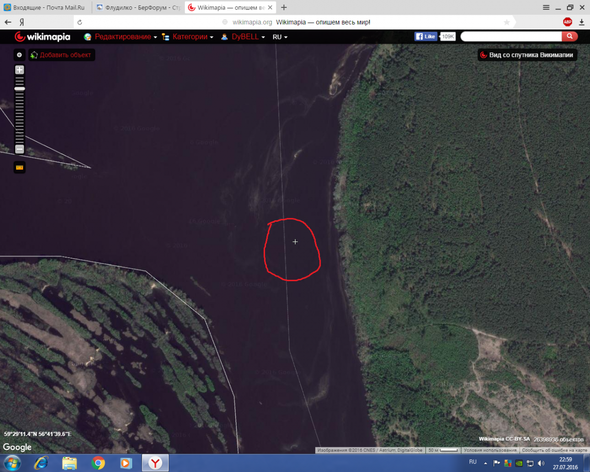 phantomAC Опубликовано 27 июля, 2016 Опубликовано 27 июля, 2016 Да, Александр, примерно там. Если только ещё чуть правее, т. е. ближе к берегу и повыше или севернее на диаметр нарисованного тобой круга. Да, видимо ошибся. Точно не вспомню до этой ямы или после гимс подошёл, супруга говорит после. Ветер был, нас снесло, пока разговаривали.