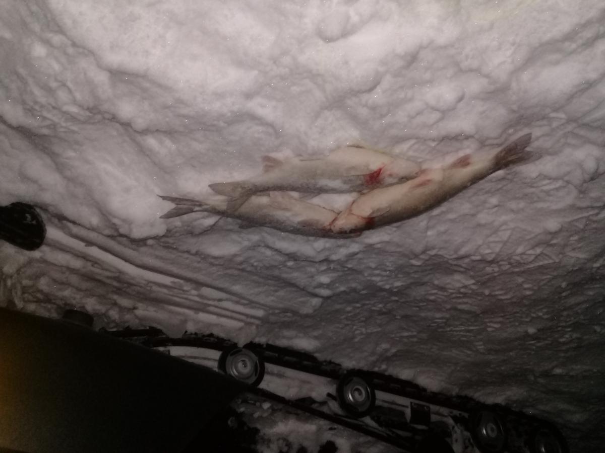 Banivur Опубликовано 13 января, 2017 Опубликовано 13 января, 2017 Сегодня прогулялись по хариусовой речке, примерно с километр стая волков кого то тащила и драла, весь лед в кровище, очень жуткое зрелище. Кого-то драли и срали рябиной. Сейчас специально поинтересовался в интернете, оказывается волки рябину кушают. Вечером пасли нас выглядывая из за поворота реки:-) жутковато:-) Поймал 13 хариусков, по сегодняшнему числу, видимо в честь старого нового года:-) Пять штучек в районе 300 гр. Остальные недомерки. Впервые приготовил из них сугудай с соевым соусом, завтро попробую:-) Всех с праздником! 2