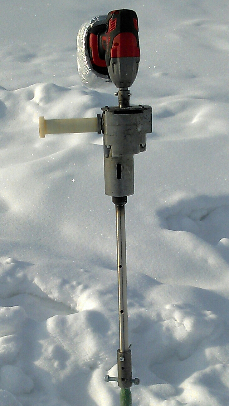 андр алекс Опубликовано 11 февраля, 2017 Опубликовано 11 февраля, 2017 (изменено) Суббота, к обеду потеплело немного, решил сгонять на канал. Проверить как там сорожка поклевывает и испытать свою новую приблуду. Гайковерт ударный, крутящий момент 260, 18 вольт, 4 а.ч. и редуктор от тихоходной дрели. Ну что, работает конечно, шведским Море 130м грызет лед уверенно, но медленно, 1 лунка-1,5 минуты, для судаковой охоты не пойдет. Уверен и 150 Торнадо спокойно потянет(для него и делал, толстых щуканов и лещей с мелководья вытаскивать), но надо редукцию немного понизить, сейчас 1к50, знаю есть 1к 28. Вес, конечно приличный, кг 6-7, но если на снежике перевозить или на машине, то это незаметно, тем более можно разобрать на три части-шнек, редуктор, гайковерт. Сейчас подберу болты по размеру, самоконтрящие гайки, покрашу... и к последнему льду буду вооружен. Суббота, к обеду потеплело немного, решил сгонять на канал. Проверить как там сорожка поклевывает и испытать свою новую приблуду. Гайковерт ударный, крутящий момент 260, 18 вольт, 4 а.ч. и редуктор от тихоходной дрели. Ну что, работает конечно, шведским Море 130м грызет лед уверенно, но медленно, 1 лунка-1,5 минуты, для судаковой охоты не пойдет. Уверен и 150 Торнадо спокойно потянет(для него и делал, толстых щуканов и лещей с мелководья вытаскивать), но надо редукцию немного понизить, сейчас 1к50, знаю есть 1к 28. Вес, конечно приличный, кг 6-7, но если на снежике перевозить или на машине, то это незаметно, тем более можно разобрать на три части-шнек, редуктор, гайковерт. Сейчас подберу болты по размеру, самоконтрящие гайки, покрашу... и к последнему льду буду вооружен. фотки забыл Изменено 11 февраля, 2017 пользователем андр алекс 2