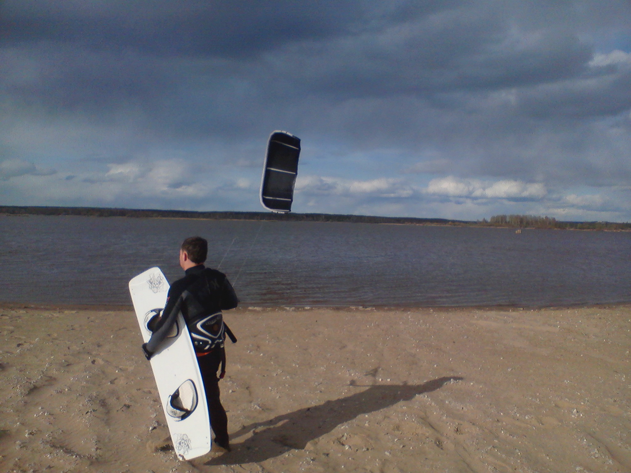 KPS Опубликовано 15 мая, 2011 Опубликовано 15 мая, 2011 доска сама по себе не тонет, но и не является водоизмещающей, только на глиссере держит человека на поверхности. поэтому для того чтоб просто ехать необходима определенная сила ветра. т.е. вполне стандартна ситуация когда кайт летает но ехать невозможно. ситуация со стихшим ветром на середине реки абсолютно стандартна :dada: для наших широт, что я в полной мере и испытал на себе в Орле вчера. как я и говорил, нельзя катать в одного, лучше бы иметь страховку в виде лодки, особенно при катании в отжим. когда ветра достаточно и человек умеет управлять куполом, выход на доску не сложен, т.к. кайт может тебя тянуть не только вперед но и вверх, так что из воды вынимает на раз. У воднолыжников проблеммы возникают тоже только при недостаточной тяге или технике. доска для лета своя, зимой обычный сноуборд